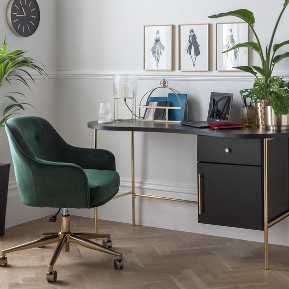 Desk chair quiz. It should have a flat surface on top and a backrest so you can sit comfortably. Comfortable desk chairs mean you can spend more time concentrating on work rather than a pain in your back. The desk and chair set are perfect for your home office or den.