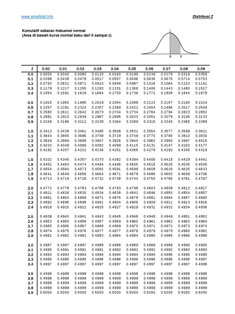 Tabel Distribusi Normal Baku 0 Z Pdf Download Gratis