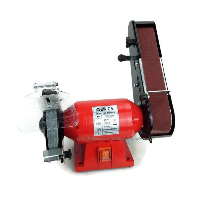 Specifications SIZE OF WHEEL150X20X127mm Belt Sizemm 50X686mm POWER250W GRINDER SPEED. These high quality machines grind sharpen and smooth with equal precision and flawless results. 150mm 3000rmin 375W with eye-shield.