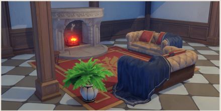 1 Red Pine Wood Round Stool 1 Northern Stone Hearth 1 Potted Plant. A spacious soft sofa of exquisite make.